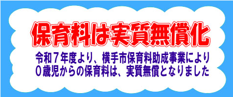|  | 令和7年度より、横手市保育料助成事業により0歳児から保育料は、 実質無料になりました。